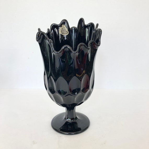Rare Vintage Fenton Art Glass Black Ebony Thumbprint Ruffled Etsy Ireland
